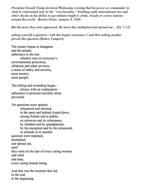 Inspired by the news, a bit of Torah, and a poem.